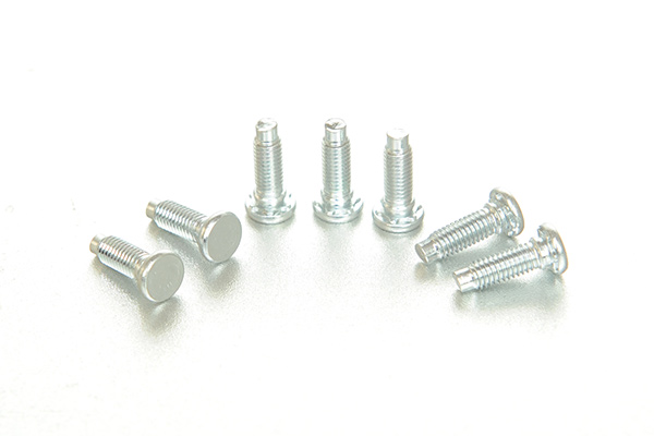 缩杆压铆螺钉是一种螺钉的螺杆从上到下是由大变小的一类非标紧固件,缩后的螺杆一般为搓牙径,有一些非全牙的螺钉就是使用了缩杆工艺。它的生产工艺过程就是先准备好生产压铆螺丝的材料,订好相应的模具,接着打头,打好头后先缩杆后搓牙。